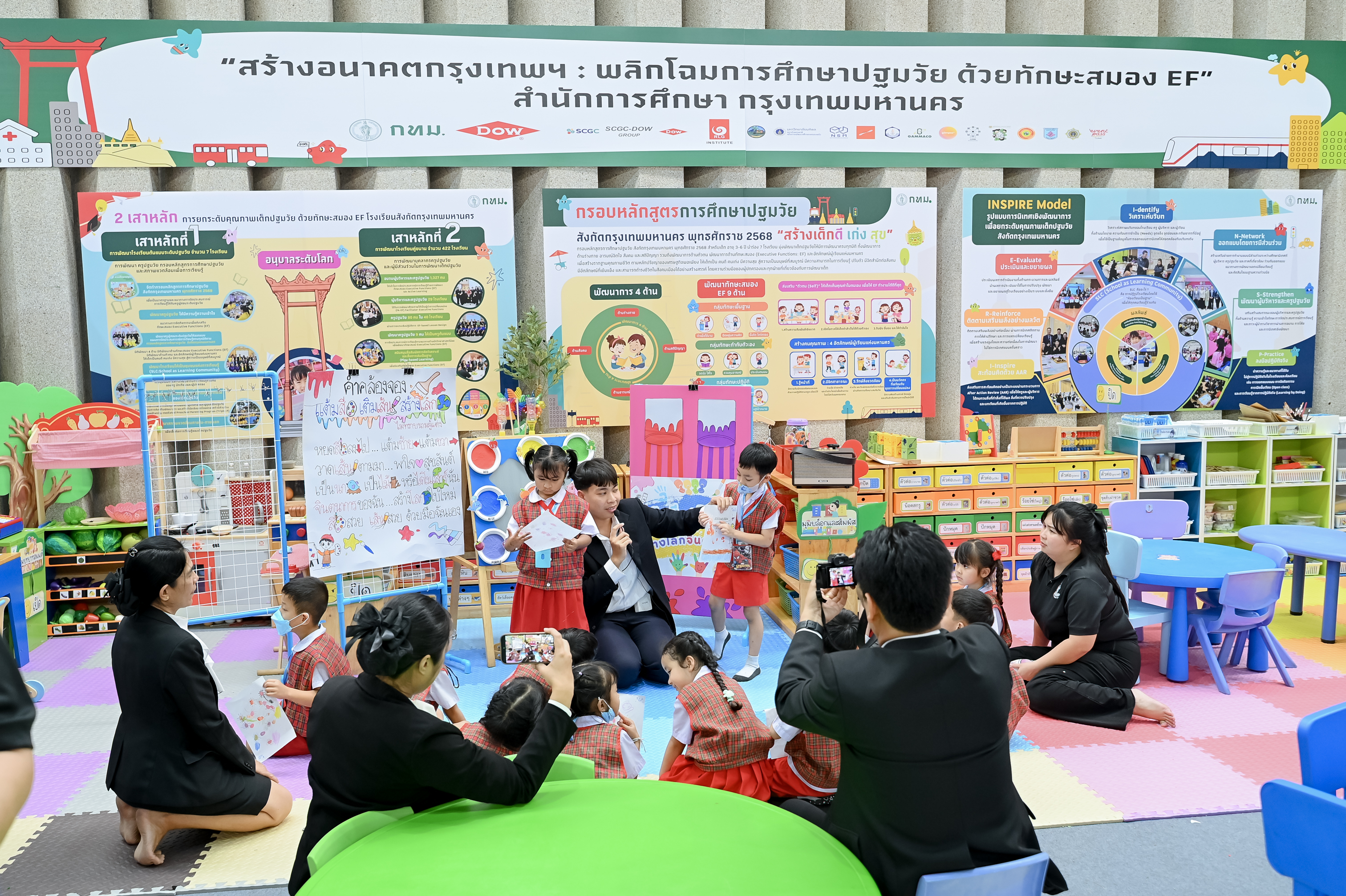 “ในด้านการพัฒนาต้นแบบ กรุงเทพมหานครได้จัดตั้งโรงเรียนอนุบาลต้นแบบอีเอฟ จำนวน 7 แห่ง เป็นฐานสำคัญในการทดลองกระบวนการเรียนรู้ การพัฒนาแผนการสอนแบบบูรณาการ EF-Active Learning และการเปิดชั้นเรียน (Open Class) ให้ครูได้มาแลกเปลี่ยนเรียนรู้ร่วมกันและขยายผลไปยังสถานศึกษาอื่น ๆ กรุงเทพมหานครยังได้เพิ่มโอกาสการเรียนรู้แก่ผู้ปกครอง โดยครูมีบทบาทสำคัญในการให้คำแนะนำ ส่งเสริมทักษะอีเอฟในชีวิตประจำวัน รวมถึงลดพฤติกรรมที่เป็นอุปสรรคต่อพัฒนาการ เช่น การใช้หน้าจอเกินจำเป็น ทำให้เกิดการเปลี่ยนแปลงเชิงบวกในครอบครัวจำนวนมาก”