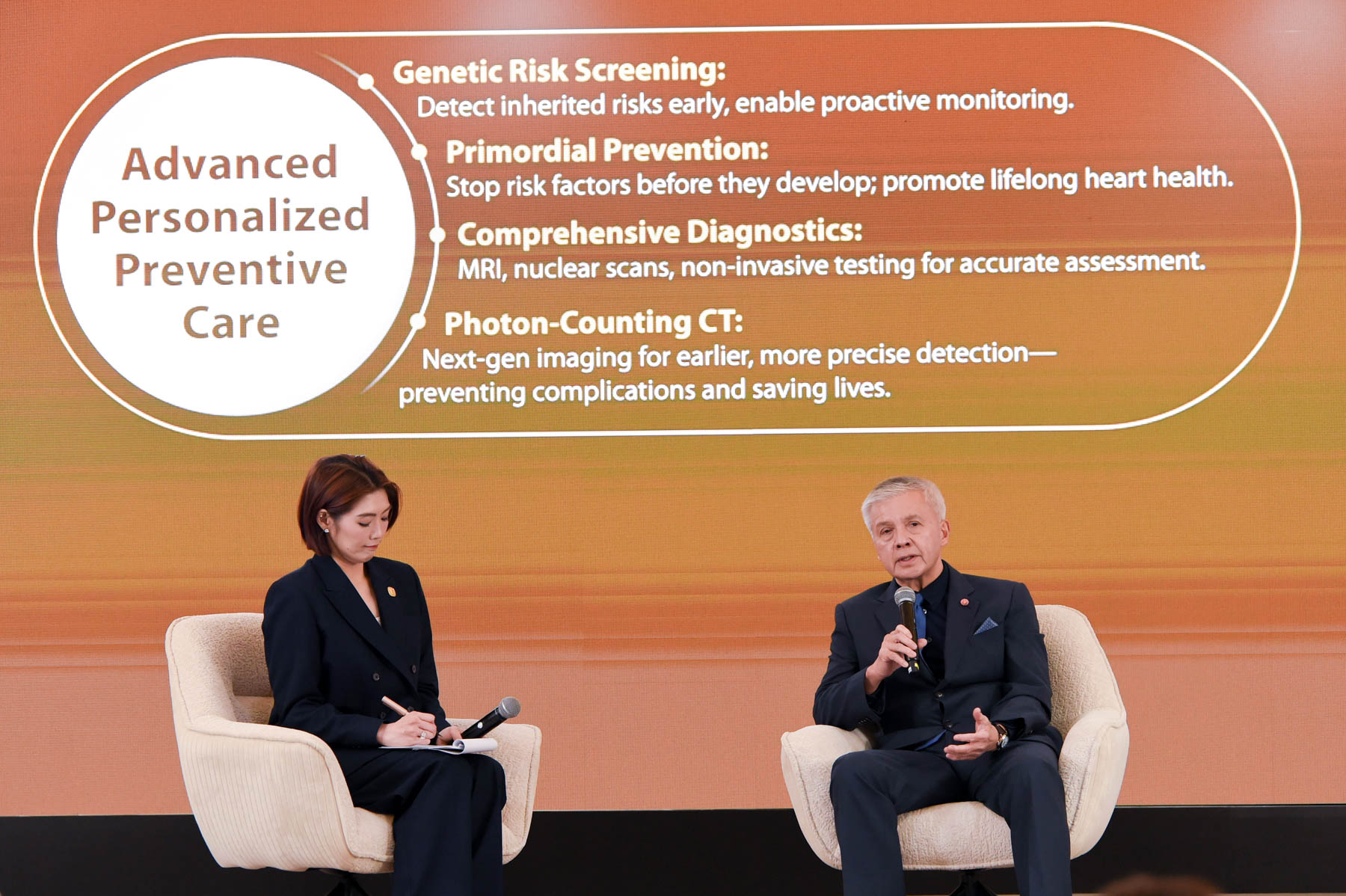 ศ.นพ. กุลวี กล่าวในหัวข้อ “How Cutting-Edge Heart Technology is Transforming Cardiac Care” ว่าหัวใจของการรักษาโรคหัวใจที่บำรุงราษฎร์คือการวินิจฉัยตั้งแต่ระยะเริ่มต้น เพราะโรคหัวใจมักไม่แสดงอาการจนกว่าจะเข้าสู่ระยะรุนแรง การตรวจพบตั้งแต่เนิ่น ๆ จึงสามารถป้องกันภาวะแทรกซ้อนและช่วยชีวิตผู้ป่วยได้ บำรุงราษฎร์จึงได้นำเทคโนโลยีการวินิจฉัยที่ทันสมัยมาใช้ เช่น เครื่อง Photon-Counting CT ซึ่งช่วยให้แพทย์สามารถประเมินการทำงานของหัวใจ รวมถึงตรวจหาความผิดปกติของลิ้นหัวใจ หลอดเลือด และเนื้อเยื่อหัวใจได้อย่างละเอียดและแม่นยำ ส่งผลให้สามารถวางแผนการรักษาได้อย่างรวดเร็วและมีประสิทธิภาพ