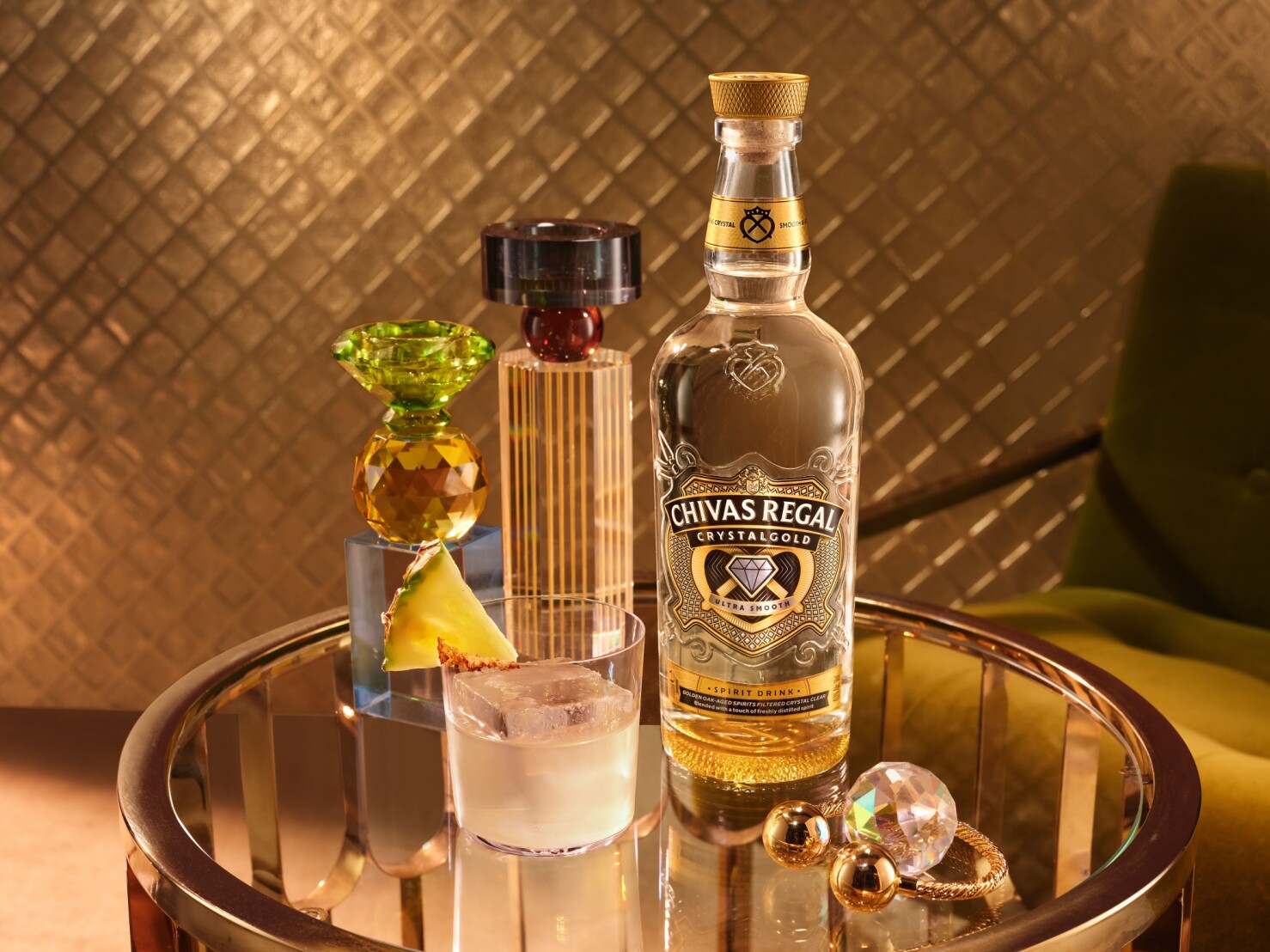 Chivas Regal Crystalgold รังสรรค์ขึ้นจากการผสมผสานสูตรเฉพาะของชีวาส รีกัล และงานฝีมือของการบ่มในถังไม้โอ๊ก นำมาผ่านกระบวนการกรองด้วยเทคนิคพิเศษอันล้ำสมัยจนมีความใสบริสุทธิ์อย่างเหนือชั้น พร้อมมอบรสสัมผัสนุ่มละมุนเหนือระดับ ขณะเดียวกันก็ยังคงรักษาเอกลักษณ์ ความลึกซึ้ง และงานฝีมืออันเป็นสัญลักษณ์เฉพาะของแบรนด์ไว้อย่างครบถ้วน ตอกย้ำภาพลักษณ์ของชีวาส รีกัล แบรนด์วิสกี้ที่ยกระดับประสบการณ์การดื่มด้วยนวัตกรรมที่ก้าวล้ำยิ่งขึ้น