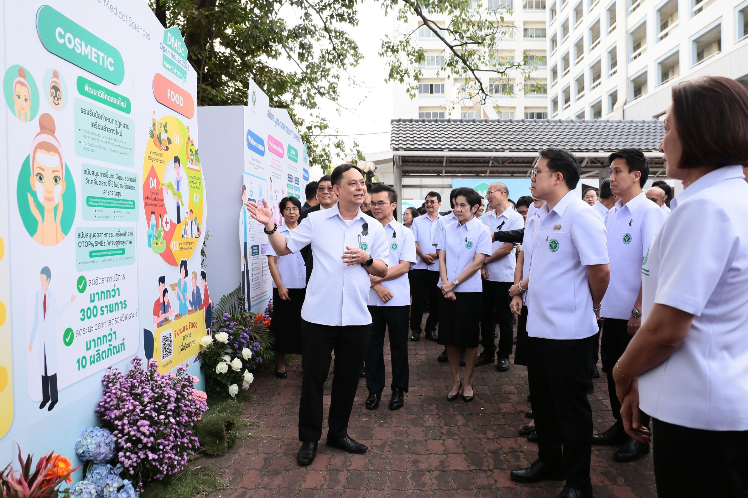 วันที่ 28 พฤศจิกายน 2568 นายพัฒนา พร้อมพัฒน์ รัฐมนตรีว่าการกระทรวงสาธารณสุข เป็นประธานพิธีเปิดงานสัมมนาเปิดบ้านกรมวิทยาศาสตร์การแพทย์ (DMSc Open House 2025) ภายใต้แนวคิด “From Lab to Life : Sciences for Healthy Longevity จากห้องแล็บสู่ชีวิตจริง วิทยาศาสตร์เพื่อการมีสุขภาพยืนยาว” โดยมี ดร.นพ.สราวุฒิ บุญสุข อธิบดีกรมวิทยาศาสตร์การแพทย์ ผู้บริหาร กระทรวงสาธารณสุข บุคลากรกรมวิทยาศาสตร์การแพทย์ ตลอดจนภาคีเครือข่ายภาครัฐและเอกชนร่วมงาน ณ บริเวณด้านหน้าอาคารศูนย์ผลิตภัณฑ์ยาเพื่อการบำบัดรักษาขั้นสูง (ATMPs) กรมวิทยาศาสตร์การแพทย์ กระทรวงสาธารณสุข จังหวัดนนทบุรี