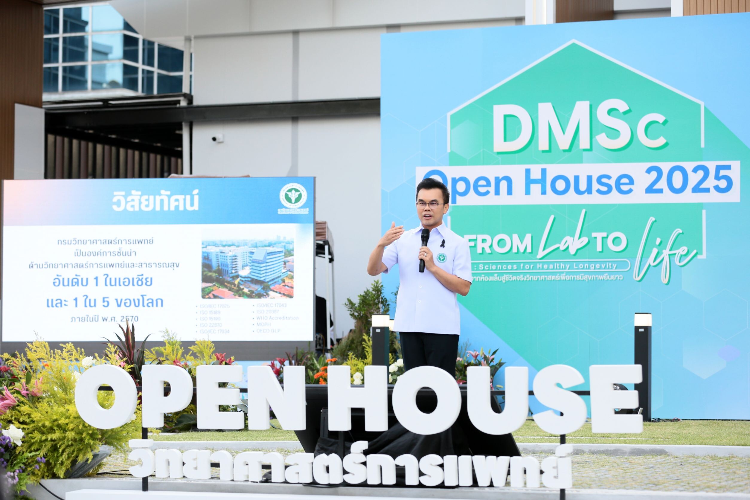 ดร.นพ.สราวุฒิ บุญสุข อธิบดีกรมวิทยาศาสตร์การแพทย์ กล่าวว่า งานเปิดบ้านกรมวิทยาศาสตร์การแพทย์ (DMSc Open House 2025) ในปีนี้ มีความพิเศษกว่าปีที่ผ่าน ๆ มา โดยการจัดกิจกรรมภายใต้แนวคิด “From Lab to Life : Sciences for Healthy Longevity จากห้องแล็บสู่ชีวิตจริงวิทยาศาสตร์เพื่อการมีสุขภาพยืนยาว” ซึ่งเป็นการแสดงถึงความพร้อมและศักยภาพของกรมวิทยาศาสตร์การแพทย์ในทุกมิติ
