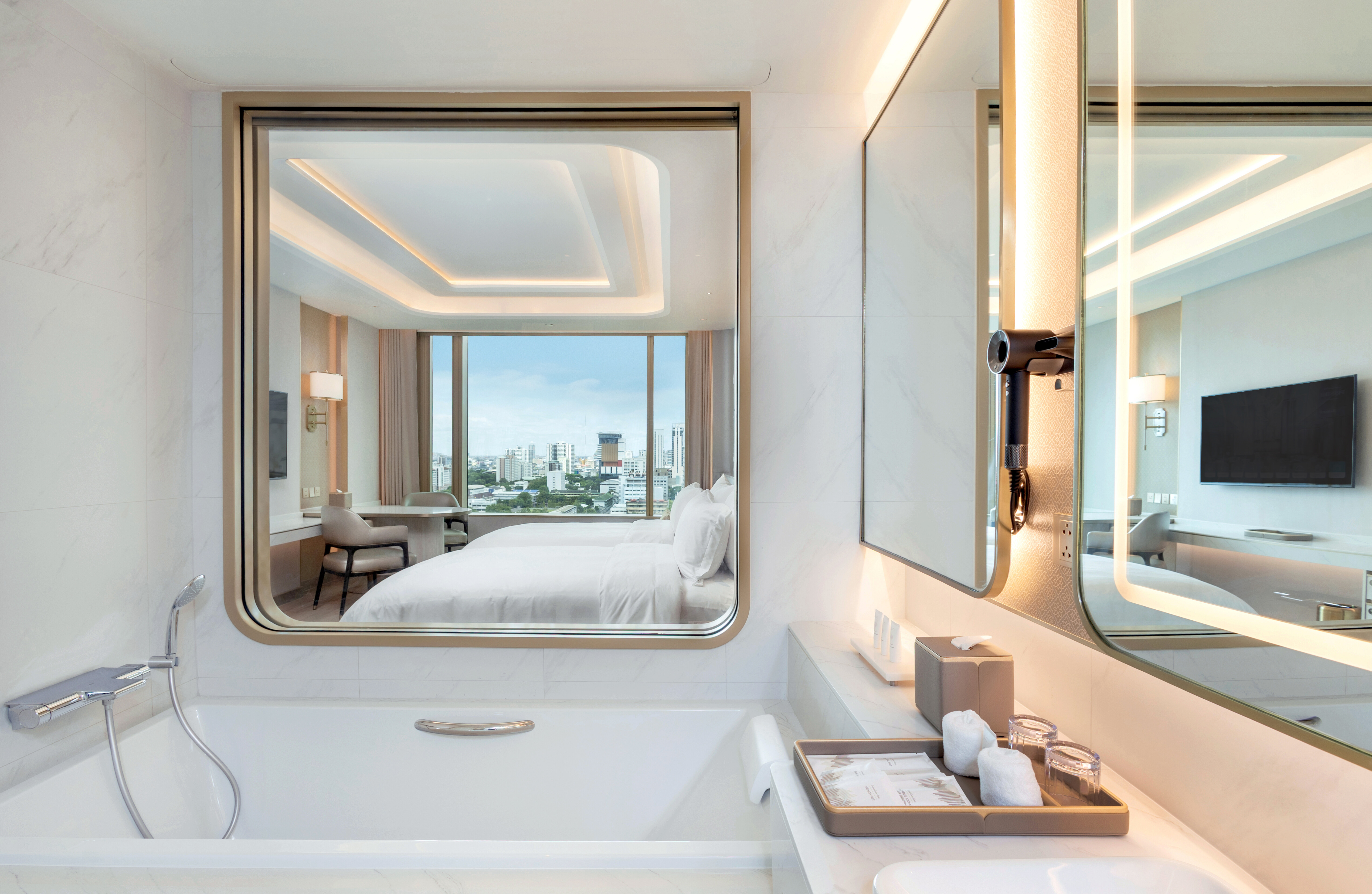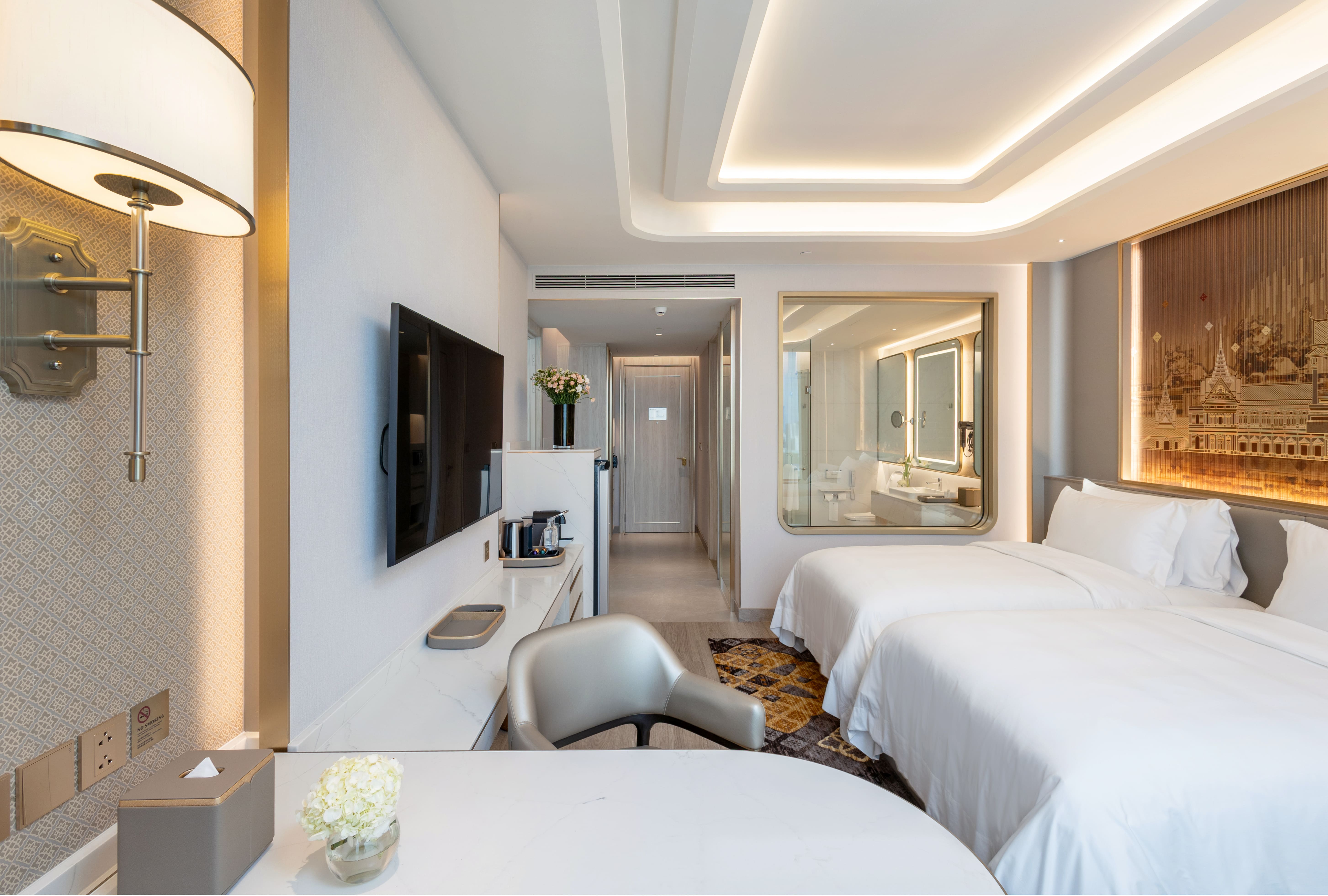 Prestige Signature (ขนาด 45 ตารางเมตร) – ห้องพักกว้างขวางที่ออกแบบมาเพื่อการพักผ่อนอย่าง สะดวกสบาย เลือกได้ทั้งเตียง Emperor King หรือเตียงแฝด แวดล้อมด้วยสิ่งอำนวยความสะดวกที่ทันสมัยครบครัน และวิวเมืองอันงดงาม