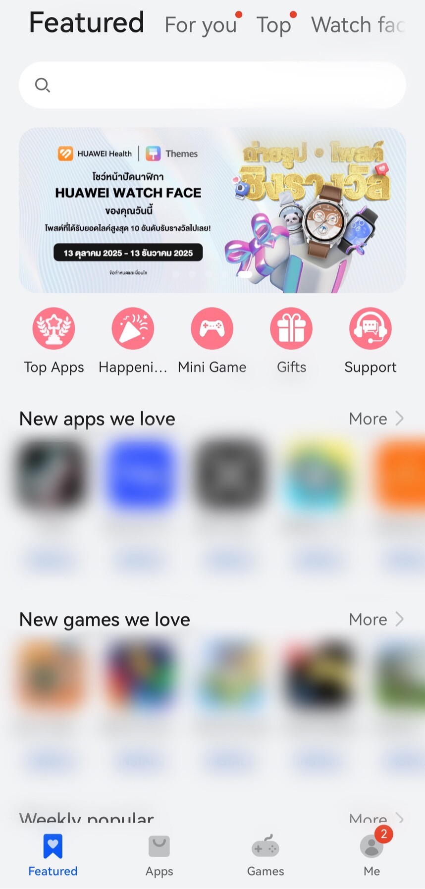 นอกจากนี้ AppGallery ยังมอบสิทธิพิเศษให้กับผู้ใช้หัวเว่ยเป็นของสมนาคุณบนแอปพลิเคชันอยู่เสมอ ไม่ว่าจะเป็นคูปอง ของขวัญ และส่วนลด เพียงเข้าไปที่ AppGallery แล้วกด Me เพื่อไปที่หน้าโปรไฟล์ จากนั้นกดคำว่า Gifts เพื่อเลือกคูปองหรือของสมนาคุณที่ต้องการแลกสิทธิ์ แล้วกด Redeem เพื่อติดตั้งแอปฯ หรือคัดลอกโค้ดสำหรับแลกสิทธิ์ พร้อมกันนี้หัวเว่ยยังคัดสรรคอนเทนต์และกิจกรรมที่กำลังเป็นเทรนด์หรือเข้ากับไลฟ์สไตล์ของผู้ใช้มาไว้ให้ในแท็ป “For You” ให้ลองไปเลือกดูกิจกรรมที่สนใจได้