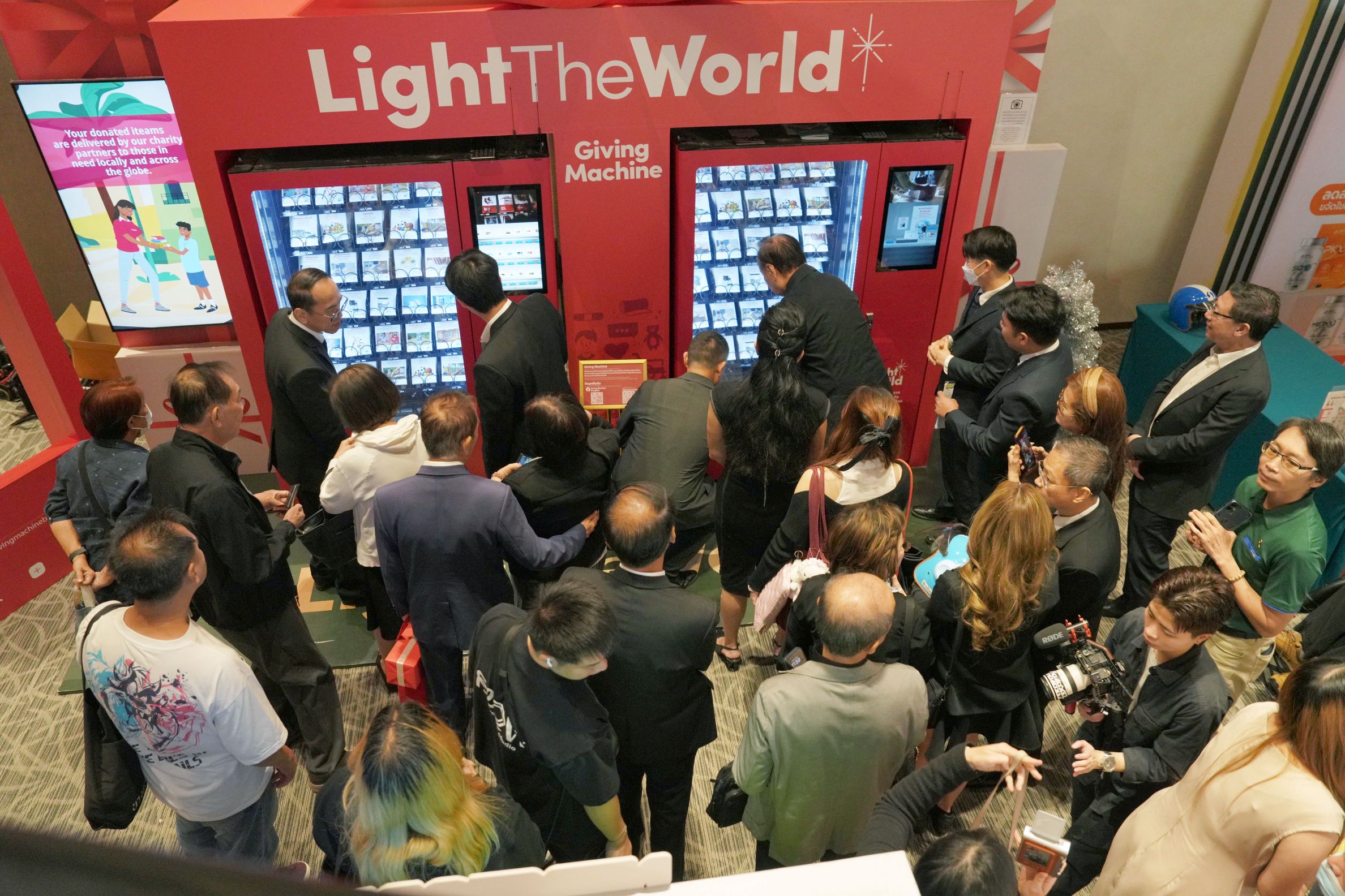 ผู้เข้าร่วมงานในกรุงเทพฯ ต่างสนุกและมีส่วนร่วมกับประสบการณ์การบริจาครูปแบบใหม่ของตู้ Giving Machine ที่ออกแบบมาให้ใช้งานง่าย สนุก รวดเร็ว และมีความโปร่งใส พร้อมให้ผู้บริจาคเลือกสนับสนุนสิ่งจำเป็นที่ตรงตามความตั้งใจได้อย่างชัดเจน โดยรายการสิ่งของที่สามารถบริจาคผ่านตู้ครอบคลุมชุดการเรียนรู้สำหรับผู้พิการทางสายตา (มูลนิธิธรรมิกชนเพื่อคนตาบอดในประเทศไทย ในพระบรมราชูปถัมภ์) ชุดสิ่งของจำเป็นสำหรับผู้ได้รับผลกระทบจากภัยธรรมชาติ (มูลนิธิไอแคร์ ประเทศไทย) ชุดวัคซีนสำหรับเด็ก (ภาค 3350 โรตารีสากล) สื่อการศึกษาที่จำเป็น (มูลนิธิสิกขาเอเชีย)
