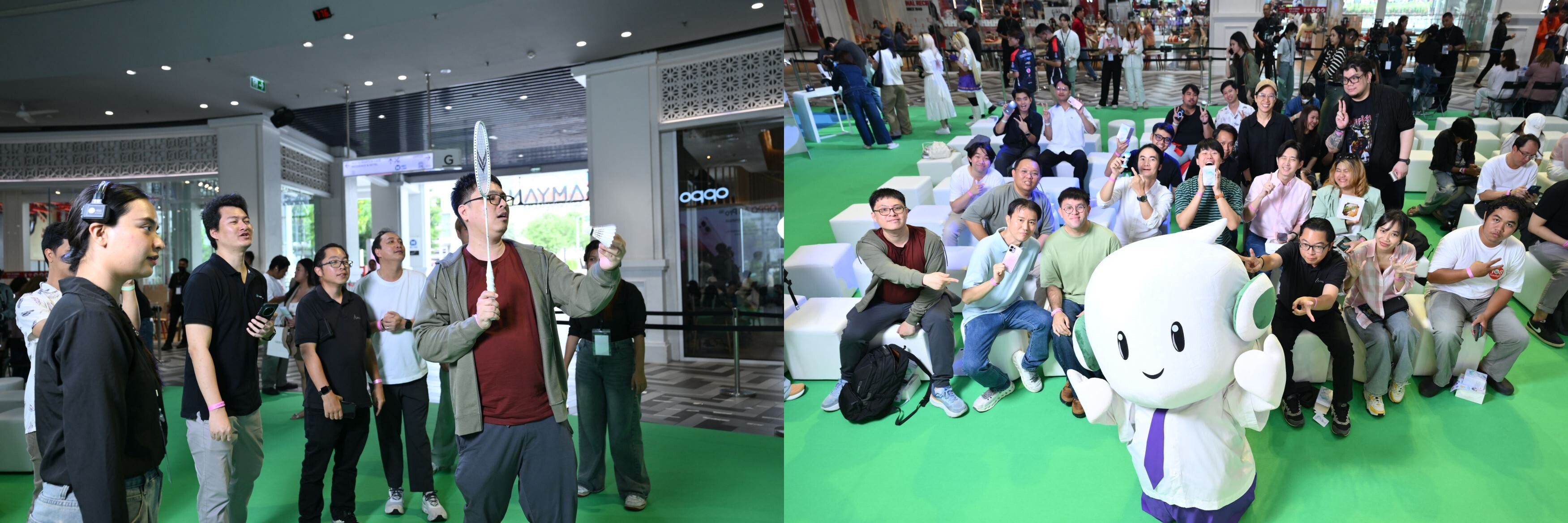 โดยงานนี้ OPPO จัดเต็มเปิดพื้นที่ให้สื่อมวลชน และแฟนๆ ออปโป้ได้มาร่วมสนุก ตะลุยด่านทดสอบความสมูทของ OPPO A6 Pro 5G กันแบบไม่ยั้ง ไม่ว่าจะเป็น การทดสอบการตกกระแทก และการกันน้ำที่มาพร้อมระดับมาตรฐานกันน้ำกันฝุ่น IP69 ทนทานทุกดาเมจ พร้อมถ่ายรูปสแน็ปช็อตสุดชิคไปกับแสตนดี้ศิลปินกันแบบฟินๆ
