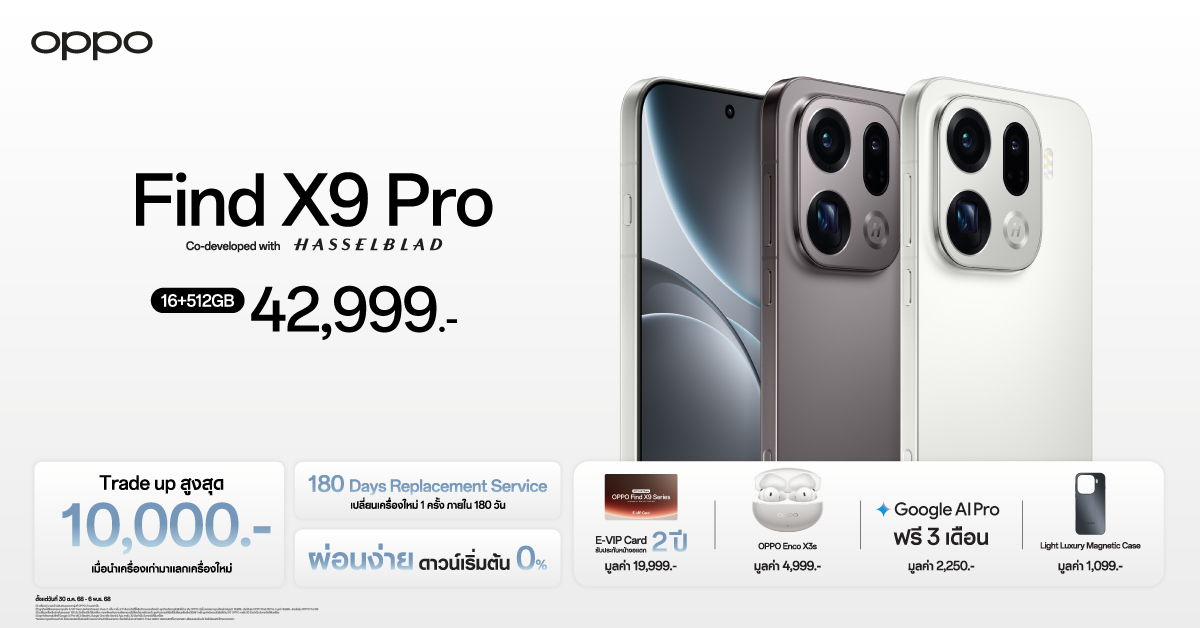 และสามารถเป็นเจ้าของ OPPO Find X9 Series ได้ง่ายมากขึ้นด้วยโปรโมชั่นมากมายดังต่อไปนี้