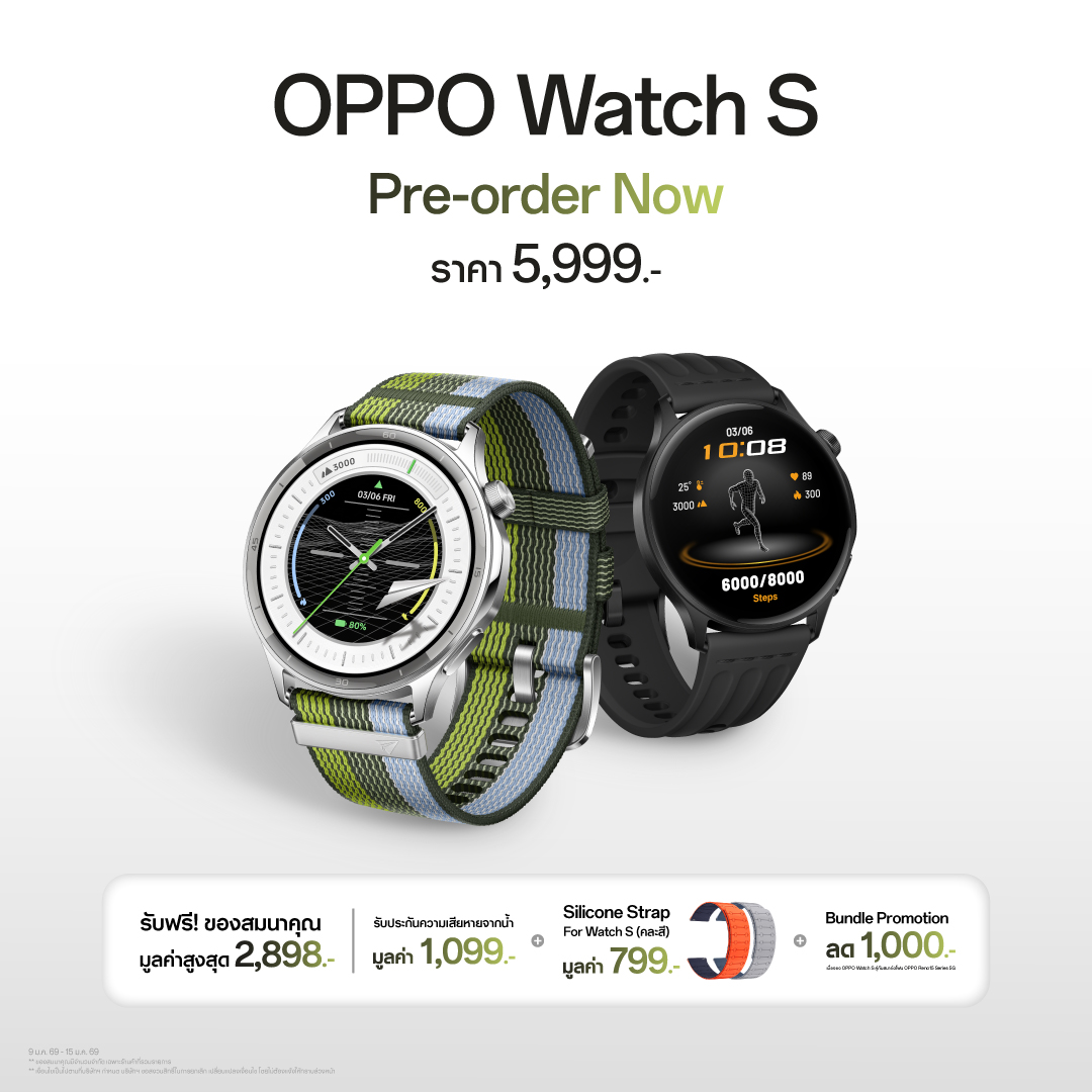 นอกจากนี้ ยังเปิดตัว 2 ผลิตภัณฑ์ IoT ใหม่ ไม่ว่าจะเป็น OPPO Watch S สมาร์ตวอทช์ที่เป็นนิยามใหม่ของความบาง และความอัจฉริยะ มากับดีไซน์บางเฉียบที่สุดที่เคยมีมาและน้ำหนักเบา เน้นความคล่องตัวและทันสมัย รองรับโหมดกีฬามากกว่า 100 ประเภท และโหมดโปรสำหรับ 12 กีฬายอดฮิต พร้อมฟังก์ชันการวิเคราะห์สุขภาพระดับเรือธง และเชื่อมต่อได้ถึง 2 เครื่องพร้อมกัน เพื่อให้ไม่พลาดทุกการสื่อสาร รองรับทั้งระบบปฏิบัติการ Android และ iOS มาใน 2 สีคลาสสิก ได้แก่ สีเงิน Silver Gleam และสีดำ Phantom Black จับคู่มากับ OPPO Pad 5 แท็บเล็ตหน้าจอ 12.1 นิ้ว ความละเอียด 2.8K มาพร้อมหน้าจอแบบด้านช่วยลดแสงสะท้อนและถนอมสายตา รองรับการเขียนลื่นไหลด้วยปากกา Stylus และ Pastel Mode ที่ให้ความรู้สึกเหมือนเขียน-อ่านบนกระดาษจริง เสริมประสิทธิภาพการทำงานให้ Smart & Smooth ที่สุดด้วยฟีเจอร์อัจฉริยะบน ColorOS for Pad และใช้งานได้ยาวนานตลอดวันด้วยแบตเตอรี่ใหญ่ 10050mAh ทั้งยังเชื่อมต่อข้ามอุปกรณ์ได้ไร้รอยต่อร่วมกับ Apple, Android และ Windows เพื่อตอบโจทย์ไลฟ์สไตล์คนรุ่นใหม่ได้ทุกที่ทุกเวลา