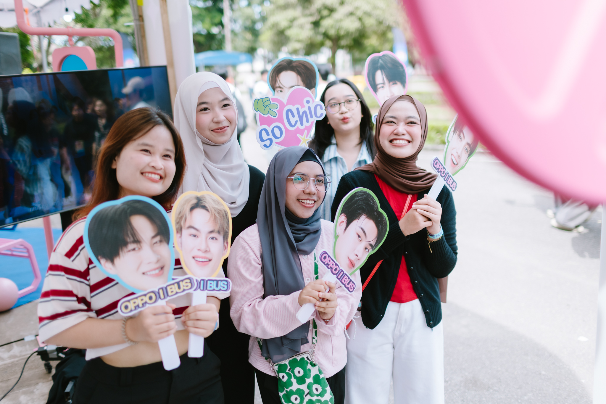 อีกหนึ่งไฮไลต์ที่เรียกเสียงฮือฮาจากแฟนๆ T-POP คือโซนถ่ายรูปกับ ป้ายไดคัทของวงบอยแบนด์สุดฮอต BUS because of you i shine และสแตนดี้ของ MINNIE of i-dle ที่มาเติมเต็มความฟินให้ทุกคนได้เก็บภาพกับศิลปินคนโปรด และแน่นอนว่า OPPO ไม่ลืมสายคอนเทนต์! กับกิจกรรม OPPO Creator Search ที่เปิดโอกาสให้นักศึกษามหาวิทยาลัยแม่ฟ้าหลวงได้โชว์ไอเดียสุดครีเอทีฟผ่าน TikTok หรือ Lemon8 พร้อมลุ้นเป็น OPPO KOL รุ่นใหม่ และของรางวัลมากมาย ไม่ว่าจะเป็น หูฟัง OPPO Enco Buds3 Pro, กระเป๋า, เสื้อผ้า และของที่ระลึกสุดพิเศษอีกเพียบ!