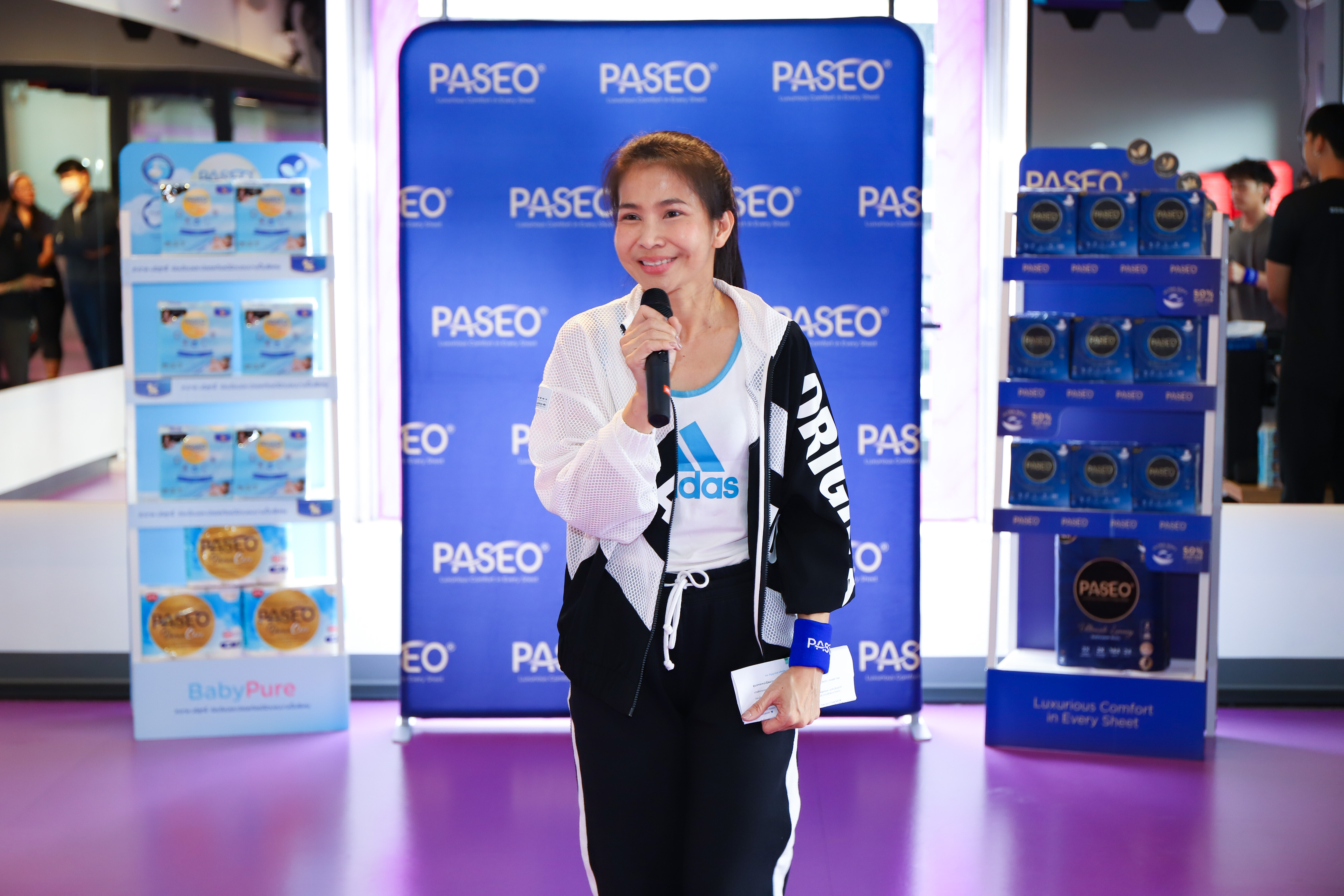 คุณธัญญาภรณ์ ทรัพย์สิน Head of Marketing (Thailand) ของแบรนด์ Paseo กล่าวถึงวัตถุประสงค์ของกิจกรรมในครั้งนี้ว่า “เราอยากให้ทุกคนได้สัมผัสด้วยตัวเองว่า Paseo ไม่ใช่แค่ทิชชูธรรมดา แต่เป็นเพื่อนคู่ใจที่ดูแลผิวได้ในทุกสถานการณ์ แม้ตอนออกกำลังกายหนักๆ เหงื่อออกเต็มตัว ผิวก็ยังรู้สึกสบาย ไม่ระคายเคือง” พร้อมทั้งได้แนะนำผลิตภัณฑ์ไฮไลต์อย่าง Paseo Milky Lotionized 4 Ply ทิชชูเช็ดหน้า 4 ชั้นที่หนานุ่มเป็นพิเศษ และผสานมอยส์เจอไรเซอร์ในตัว ช่วยลดแรงเสียดสีได้ถึง 25% และผ่านการทดสอบโดยแพทย์ผิวหนังแล้วว่าอ่อนโยนต่อทุกสภาพผิว