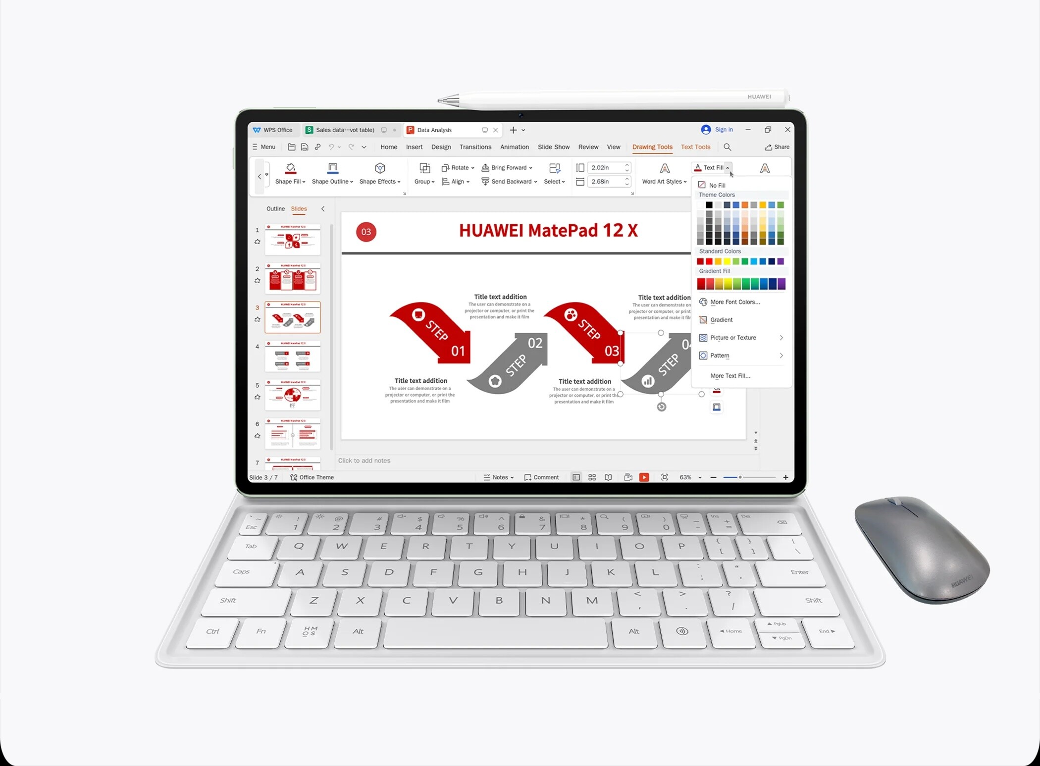 HUAWEI MatePad 12 X (2026) ยกระดับการทำงานบนแท็บเล็ตให้เหนือชั้นด้วย PC-level WPS Office 3.0 ที่ยกฟีเจอร์จากเวอร์ชันพีซีมาแบบครบถ้วน ช่วยให้จัดการไฟล์ Word, Excel และ Powerpoint ได้อย่างมืออาชีพ พร้อมความสะดวกในการส่งต่อข้อมูลผ่าน SuperHub และ Cloud Sync ข้ามอุปกรณ์ได้อย่างไร้รอยต่อ นอกจากนี้ยังตอบโจทย์สายจดและสายวาดด้วย HUAWEI Notes เวอร์ชันล่าสุดที่รองรับการแบ่งหน้าจอทำงาน และแอปฯ GoPaint ที่ใช้งานร่วมกับปากกา M-Pencil Pro ได้อย่างอัจฉริยะผ่านปุ่มลัด Star Ring และการสั่งงานด้วยแรงบีบเพื่อเปลี่ยนเครื่องมือ ด้านความบันเทิงและการใช้งานจริงก็โดดเด่นด้วยหน้าจอ Ultra-Clear PaperMatte ขนาด 12 นิ้ว ที่ช่วยลดแสงสะท้อนและรอยนิ้วมือ มอบสัมผัสการเขียนที่เป็นธรรมชาติเหมือนกระดาษจริงพร้อมช่วยถนอมสายตา ปิดท้ายด้วยแบตเตอรี่ความจุสูงถึง 10,100 mAh ที่ใช้งานวิดีโอต่อเนื่องได้นาน 14 ชั่วโมง พร้อมรองรับการชาร์จไว HUAWEI SuperCharge ที่ช่วยให้คุณลุยงานและพักผ่อนได้อย่างเต็มที่ตลอดวัน
